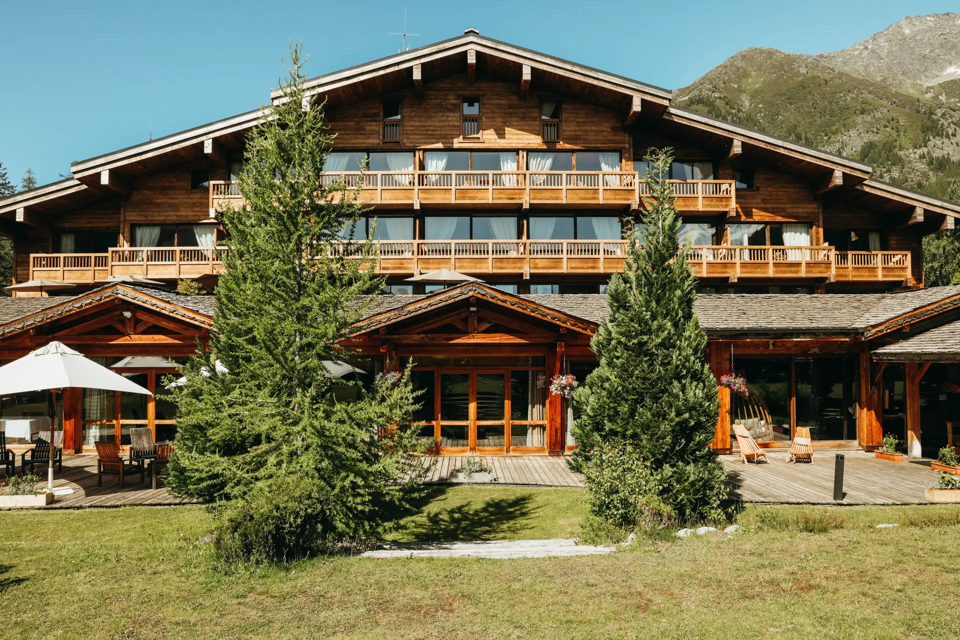 Sa salle panoramique de 60m² baignée de lumière naturelle accueille vos événements jusqu’à 20 participants. Les 23 chambres et suites marient élégance traditionnelle et confort moderne, tandis que le restaurant Le Rosebud sublime les produits du terroir. Le spa avec piscine intérieure, sauna et bains à remous extérieurs transforme vos pauses en moments de pure détente face aux Aiguilles de Chamonix.